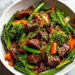 A quick and flavorful Beef Stir Fry with Vegetables recipe that comes together in just 30 minutes. Tender slices of beef are seared to perfection and tossed with crisp bell peppers, broccoli, carrots, and snap peas in a savory, slightly sweet sauce. Perfect for a healthy weeknight dinner served over steamed rice.