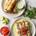 For a party, I like to stand the taquitos upright in a tall glass or mason jar—makes grabbing them easy while keeping the table neat. You can also lay them out on a platter with little bowls of various dips (salsa, queso, cilantro lime crema) for a fun, festive spread that impresses guests without extra work.