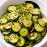 This Asian Cucumber Salad is a refreshing and flavorful side dish featuring crisp cucumbers tossed in a tangy, slightly sweet, and spicy dressing made from rice vinegar, soy sauce, honey, sesame oil, and garlic. Garnished with crunchy roasted peanuts and green onions, this salad is perfect for a light appetizer or a complement to your favorite Asian-inspired meals.