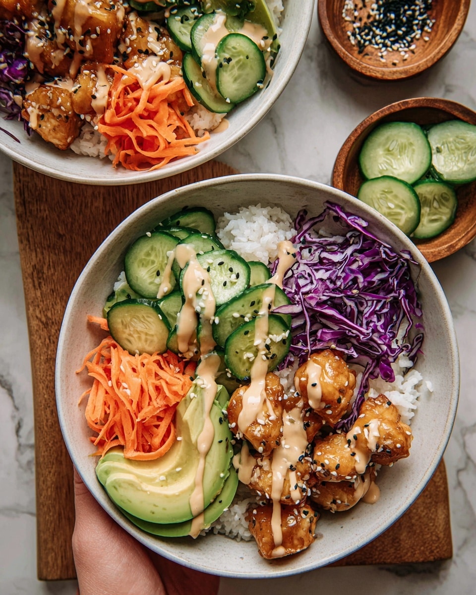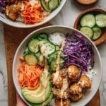 - Use freshly cooked rice for the best texture and flavor in the bowls.