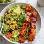 This BBQ Chicken Skewer Salad combines tender, smoky chicken skewers glazed with zesty BBQ sauce, paired with a fresh and vibrant salad tossed in a creamy W30 Herby Ranch dressing. The salad features crisp romaine, sweet corn, juicy tomatoes, and creamy avocado, making it a perfect summer meal that’s both satisfying and flavorful.
