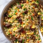 Keywords: beef fried rice, Asian beef stir fry, easy fried rice recipe, steak fried rice, quick weeknight dinner
