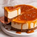 For birthdays or special holidays, I like to build small cheesecake jars layering crust, cheesecake, and caramel sauce, topped with whipped cream and mini caramel shards. It’s impressive and perfect for individual servings. Another fun idea is to make a cheesecake bar with slices alongside bowls of extra caramel, nuts, and sea salt so your guests can customize.