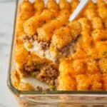 Reheat your casserole in the oven at 350°F (175°C) to keep the tater tots crispy — microwave tends to make them soggy. If you’re in a hurry, a quick zap in the microwave just to warm through then finish in the oven for 5-10 minutes works great.