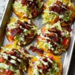 You can definitely veganize it by swapping cheese for a plant-based meltable alternative and using vegan bacon or grilled mushrooms to replace pork bacon. Swap sour cream with a vegan yogurt or cashew cream in the avocado drizzle. The fresh veggies and creamy drizzle will keep it delicious.