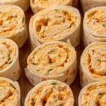 Keywords: Buffalo chicken, roll-ups, appetizer, party food, spicy chicken, no-cook appetizer, rotisserie chicken, buffalo sauce