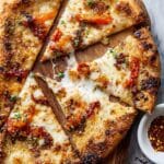 I like to keep it simple with fresh basil or a handful of arugula tossed on top for a peppery, fresh contrast that brightens each slice. Sometimes a little extra drizzle of good olive oil or a sprinkle of flaked sea salt just before serving really lifts the whole pizza experience.
