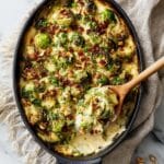 PrintCheesy Brussels Sprouts Casserole with Bacon Recipe