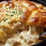 Reheat leftovers in a 350°F oven for about 15 minutes covered loosely with foil to prevent overbrowning. This method keeps the crust flaky rather than chewy, which can happen if you microwave directly. If in a hurry, microwave on medium power for 1-2 minutes and then finish in the oven or toaster oven for crispiness.