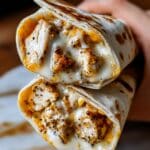 Cheesy Garlic Chicken Wraps are a delicious and satisfying meal made with tender cooked chicken, a creamy garlic cheese sauce, and melted mozzarella or cheddar cheese all wrapped in a golden, crispy tortilla. This easy skillet-cooked recipe is perfect for a quick lunch or dinner, offering rich flavors with a hint of Italian seasoning and garlic.