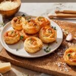 These Cheesy Garlic Cruffins combine the flaky, buttery layers of puff pastry with a luscious garlic butter and cheese filling, baked to golden perfection. Perfect as a savory breakfast treat or an indulgent snack, these cruffins are bursting with mozzarella, parmesan, and fresh herbs for a flavorful bite every time.