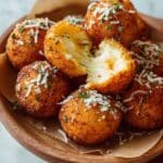 These Cheesy Parmesan Potato Balls are crispy on the outside, creamy and cheesy on the inside, making them a perfect appetizer or snack. Made with mashed potatoes blended with Parmesan cheese and garlic, stuffed with mozzarella cubes, coated in a crispy breadcrumb crust, and fried to golden perfection. Garnished with fresh parsley and extra Parmesan for an irresistible savory bite.