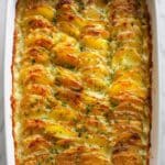 Yes! While I recommend russet or Yukon gold for their texture, you can also use red potatoes or fingerlings, though the texture may be a bit waxier and hold their shape more firmly. Just slice them thinly and watch the baking time since thinner or firmer potatoes may cook differently.