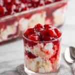 I don’t usually freeze Cherries in the Snow Recipe since the texture can change when thawed, especially the whipped topping and cake. But if you do, freeze in a sealed container for up to one month and thaw overnight in the fridge. Just know it might be a little less fluffy after thawing.
