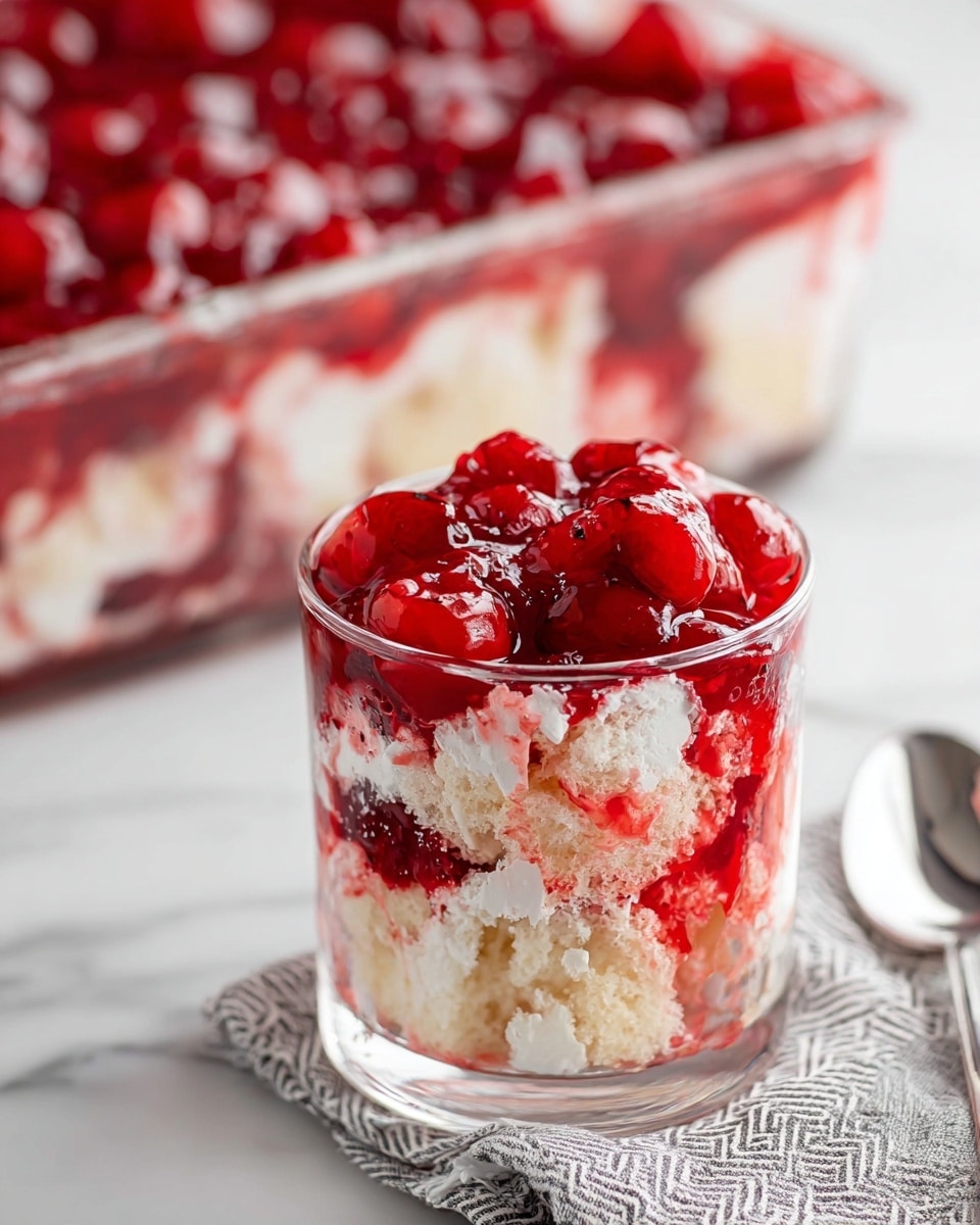 What makes this Cherries in the Snow Recipe stand out for me is how easily it layers cooling cream cheese and fluffy whipped topping over a tender angel food cake, then gets crowned with luscious cherry pie filling. It’s a real crowd-pleaser that’s refreshingly light but satisfying at the same time. Trust me, once you try it, you’ll want to keep this in your dessert rotation!