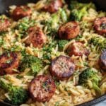This Chicken Sausage Broccoli Orzo recipe is a hearty, flavorful one-pan meal combining tender chicken sausage, fresh broccoli, and tender orzo pasta cooked in a savory chicken broth. Enhanced with Italian herbs, garlic, and finished with Parmesan and fresh lemon juice, it offers a perfectly balanced, comforting dish ready in just 30 minutes.
