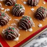 - Add Toppings and Drizzle: Before the coating sets, sprinkle extra festive sprinkles on top of the coated truffles for decoration. If using, melt the white chocolate chips separately and drizzle them over the coated truffles for an elegant finishing touch.