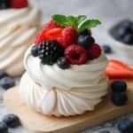 Whether you’re hosting a cozy Christmas dinner or bringing a dessert to a holiday party, these mini pavlovas always steal the spotlight. Plus, they’re customizable—which means you can play around with your favorite fruits and garnishes to truly make them your own. Trust me, once you try this Christmas Mini Pavlovas Recipe, it’ll become a staple in your festive baking tradition.