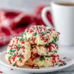 I usually keep it simple and let the sprinkles be the star garnish, but you can get creative! A light dusting of powdered sugar adds a snowy finish perfect for Christmas. Or, dip half the cookies in melted white chocolate and sprinkle extra colored sugars on top — it’s always a hit with guests.