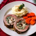 - Slice and Serve: Remove the kitchen twine and slice the stuffed beef tenderloin into thick medallions. Serve immediately with your choice of sides and enjoy your elegant Christmas main course.