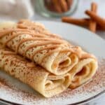 - Assemble the Crepes: Spread a thin layer of cinnamon yogurt filling over each crepe, then sprinkle with the sugar-free cinnamon sugar mixture. Roll or fold the crepes with the filling inside.