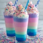 Serve chilled, topped with whipped cream and fun sprinkles or a twisty lollipop for that unicorn magic. They’re perfect as a standalone dessert or part of a fun party spread.