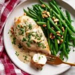 Return the chicken breasts to the pan, nestling them in the velvety sauce. Let everything simmer gently for 20 to 30 seconds per side, just long enough for the chicken to soak up the sauce and heat through without drying out. Then, take off the heat, sprinkle the dish with fresh parsley, and you’re ready to serve.