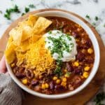 I’m all about the toppings when it comes to serving this soup. Olives add a nice briny bite, diced tomatoes and avocados bring freshness and a creamy texture, and chopped cilantro offers that bright, herbal note that lifts the whole bowl. Don’t skip adding crunchy corn chips on top for texture, plus a generous dollop of sour cream to cool everything down and add a creamy finish.