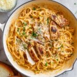 I’ve frozen this pasta before, but the cream sauce does change texture slightly after thawing. If you want to freeze it, freeze the pasta and sauce separately from the chicken if possible, then combine and reheat gently to preserve creaminess. Adding a bit of fresh cream when reheating helps revive the sauce’s smoothness.