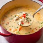 I’ve frozen this soup a few times with success. Make sure to cool it completely before freezing, then portion into freezer-safe containers. When thawed, it might thicken a bit more, so add a splash of milk or broth while reheating to loosen it back up.