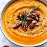 I’m a big fan of topping this soup with a little swirl of crème fraîche or coconut yogurt for creaminess and a touch of brightness. Toasted pepitas (pumpkin seeds) add a fun crunch that’s a nice contrast. Sometimes I sprinkle chopped fresh parsley or cilantro to add an herbal freshness that balances the warm spices perfectly.