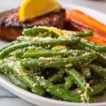 While I don’t usually freeze this dish because the texture shifts a bit after thawing, you can freeze roasted green beans without Parmesan added. Then toss with Parmesan and reheat fresh for the best creaminess. It’s a handy trick if you want to prep veggies ahead and finish when needed.