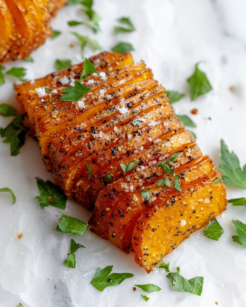- Serve: Once baked, sprinkle flaky sea salt and fresh parsley on top before serving. Enjoy these crispy accordion potatoes as a delightful side dish.