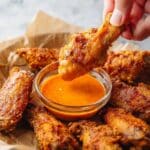 Once your wings are golden brown and crispy, pull them from the oven and dig in right away or toss them in your favorite wing sauce. I often make a quick buffalo sauce by mixing hot sauce with melted butter—classic, simple, and so delicious. But honestly, these wings are incredible just as they are too!