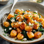I can’t tell you how much I love this Crispy Gnocchi with Spinach and Feta Recipe — it’s one of those dishes that feels both indulgent and fresh at the same time. The gnocchi crisp up golden and crunchy on the outside but stay wonderfully pillowy inside, while the spinach brings a vibrant, earthy pop and the feta adds a salty, creamy finish. It’s perfect for those busy weeknights when you want something comforting without a ton of fuss.