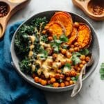 This Curried Sweet Potato and Chickpea Sheet Pan Dinner is a flavorful, wholesome vegan meal that combines tender roasted sweet potatoes, crispy chickpeas, and spiced cabbage with vibrant curry seasonings. Perfect for a healthy weeknight dinner, it’s easy to prepare with minimal cleanup and customizable with various dressings and garnishes.