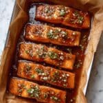 This Easy Baked Salmon with Honey Soy Glaze recipe features tender, flaky salmon fillets baked to perfection and coated with a flavorful glaze made from low sodium soy sauce, honey, Dijon mustard, olive oil, and minced garlic. It’s a quick and healthy dish perfect for weeknight dinners, combining sweet and savory flavors that complement the rich taste of salmon.