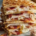 Absolutely! While chicken and bacon are classic here, you can substitute with shredded turkey, cooked ground beef, or even pulled pork. Just make sure the meat is cooked and shredded or chopped to fit nicely inside the quesadilla.