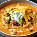 Keywords: Chicken tortilla soup, Tex-Mex soup, easy chicken soup, creamy chicken soup, tortilla strips, comfort food
