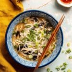Keywords: egg drop soup, noodle soup, shiitake mushroom soup, easy Asian soup, chicken broth soup, egg flower soup