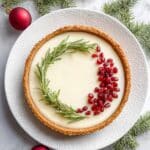 - Decorate and serve: Before serving, optionally garnish the cheesecake with fresh rosemary sprigs and a scattering of pomegranate seeds for a festive and colorful presentation.