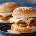 - Assemble the Sliders: Place a slice of mozzarella cheese on each fried chicken piece while still warm, allowing it to melt slightly. Spread a generous amount of Bang Bang sauce on the slider rolls, then layer with the cheesy chicken breasts. Cover with the top slider bun.