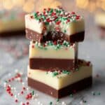 This Festive White Chocolate Fudge Recipe features two delicious layers: a semi-sweet chocolate base and a white chocolate topping decorated with colorful Christmas sprinkles. Rich, creamy, and easy to make, this fudge is perfect for holiday celebrations and gifting.