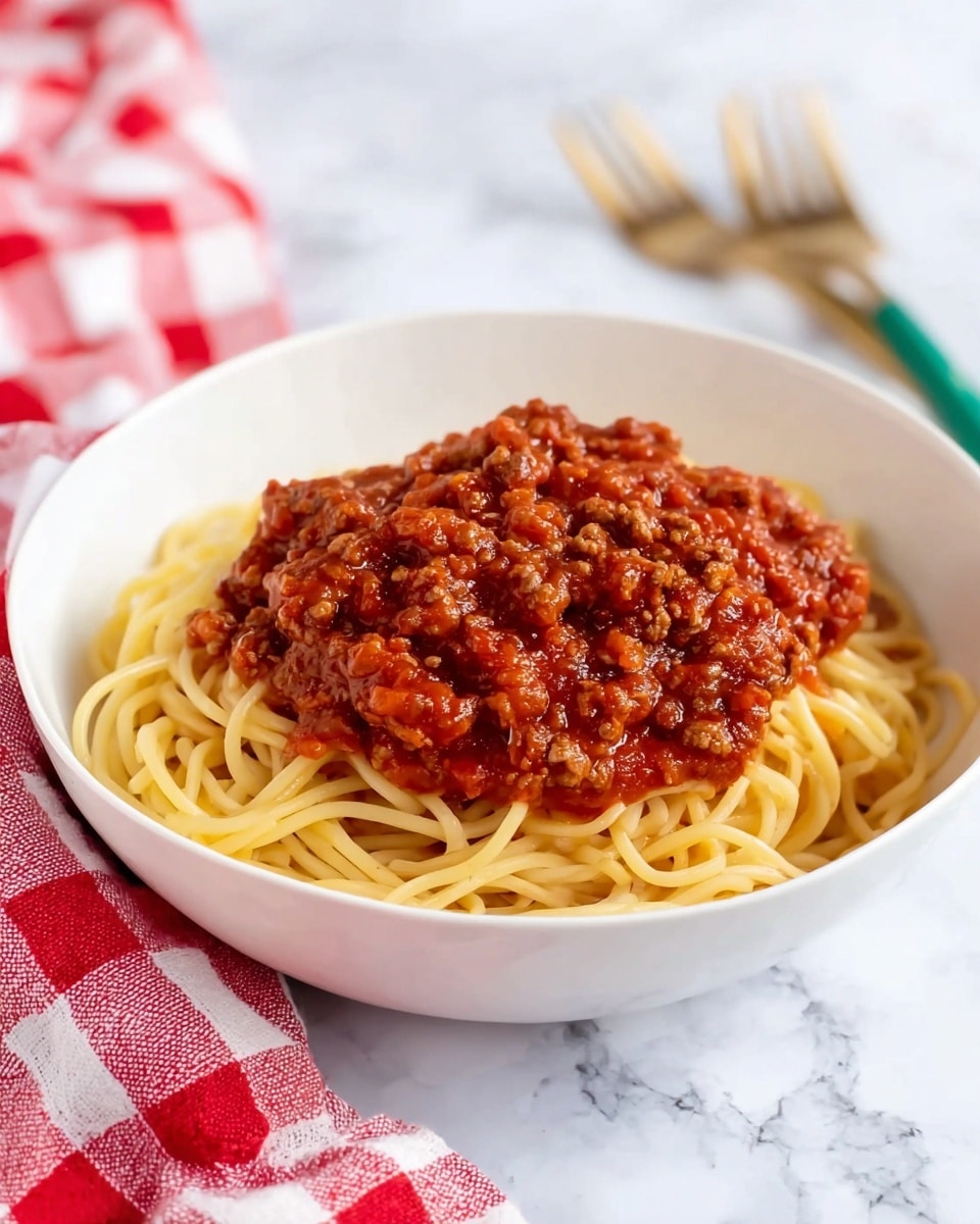 For special occasions, I like serving this spaghetti in individual glass bowls layered with sauce and cheese, topped with colorful garnishes like sliced olives or bell peppers to brighten things up. Kids love the layered look because it feels fun and fancy. Another idea is baking the sauced spaghetti briefly with extra cheese on top to create a bubbly, golden crust—that twist gets rave reviews every time!