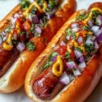 These hot dogs shine alongside classic sides like crispy fries or a light coleslaw, but my favorite pairing is a refreshing cucumber salad or grilled corn on the cob. The cool, crisp veggies balance out the spicy sauce perfectly, making the meal feel complete without weighing you down.