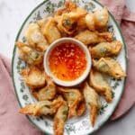 - Larger batch for gatherings: Double or triple the recipe and freeze wontons before frying to save time on party day. I do this all the time, and it’s a lifesaver.