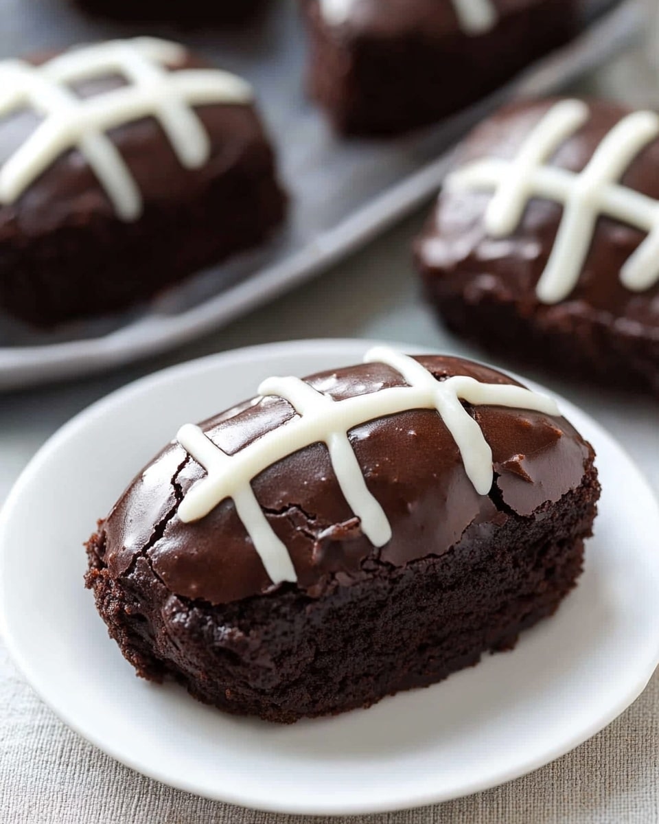 Once, I cut these brownies into little football shapes and wrapped them individually for a party favor—such a hit! You can also use edible gold dust on the white chocolate “laces” to make them shine for a championship party or big event. Presentation makes this recipe feel even more special.