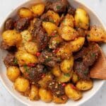 For a dinner party, I love serving the steak bites and potatoes over a bed of creamy mashed cauliflower or even draped on top of buttered noodles. Arranging everything on a large wooden board with fresh herb sprigs looks rustic and inviting. This dish also shines when served family-style with shared bowls so everyone can dig in.