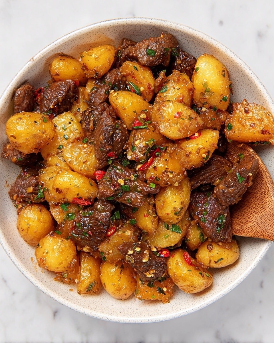 To get that perfect balance of crisp potatoes and succulent steak, I stick to simple, fresh ingredients that play beautifully together. Using Yukon Gold potatoes works well because they get nicely golden without falling apart, and fresh garlic brings that unmistakable aromatic punch.