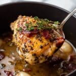 These ingredients are a dream team: smoky bacon, tender chicken thighs, and mellow garlic cloves all come together to build deep layers of flavor. My trick is to get good quality bone-in chicken thighs and fresh garlic—both really shine in this slow-cooked dish.
